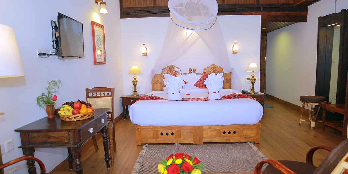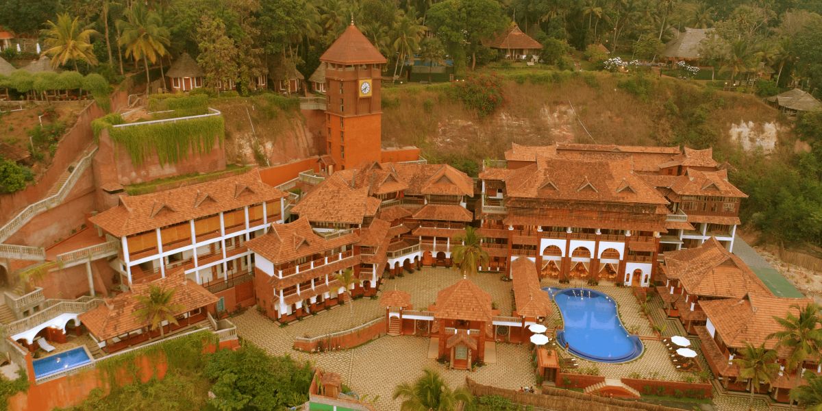 The retreat's gorgeous location, which is surrounded by thick vegetation and has a view of the Arabian Sea's blue seas, goes well with its therapeutic services. Wooden buildings, calming colours, and natural materials create an environment of harmony and tranquillity in the architecture and design, which capture the essence of traditional Kerala.