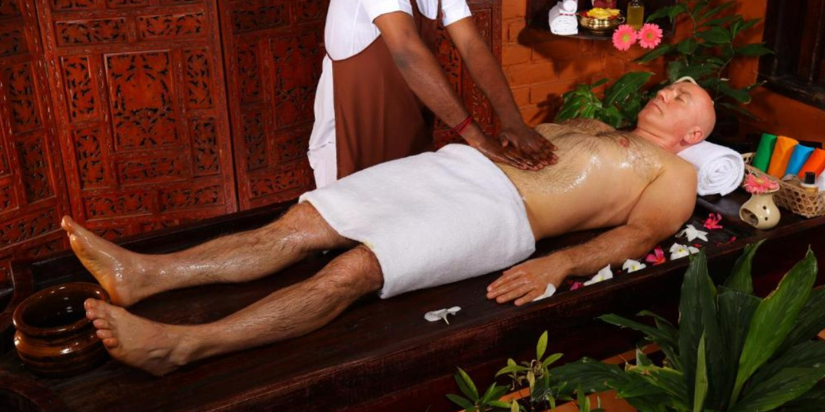 The package includes Body massage, Snehapanam, Nasyam, Virachanam(Medicated purgative), Snehavasthi, Dhara, Pizhichil, Njavarakizhi, Karnapooranam, Tharpanam, Sirovasthi, Steam Bath, and internal herbal medicines.